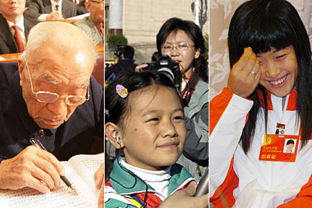 十七大上的“最大”與“最小”   年齡最大的代表——方強;年齡最小代表——女子佩劍運動員譚雪;年齡最小的記者——吳梓曼。