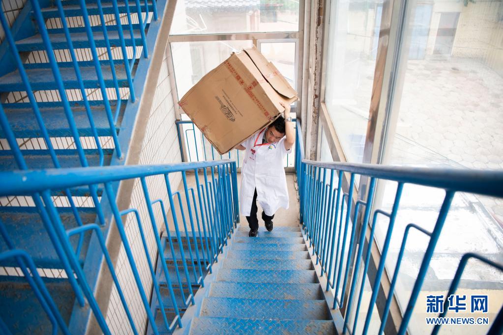在太原市社會(huì)(兒童)福利院,黨龍祥在搬運(yùn)社會(huì)愛(ài)心人士捐贈(zèng)的玩具(5月26日攝)。新華社記者 楊晨光 攝
