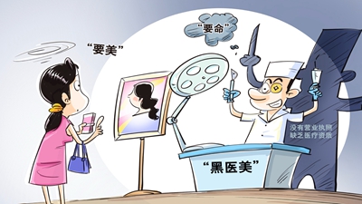 “輕醫美”之“輕”,往往讓人誤以為風險極低而輕易選擇此類服務。有消費者隨便找一家生活美容館就敢接受“輕醫美”服務,有的甚至熟人間相互注射美容針,極大增加了安全隱患。“輕醫美”不只有“美”,本質上是“醫”。對“輕醫美”存在的風險必須高度重視。