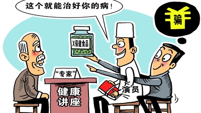 近日有媒體報道,網上有人打著中醫的幌子賣課圈錢。那些自稱“神醫傳人”“國醫名師”的講師,根本沒有培訓資質。養生保健“坑老”騙局其實并不新鮮。坑騙的一大“訣竅”是,渲染和利用老年人的健康焦慮。針對專坑老人的“養生騙局”,必須持續加大打擊力度,進一步加強保健品監管。