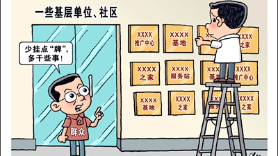 開展達標評比、創建示范活動,本是以標兵引領推動工作落實的有效之舉。但是一些部門卻將發牌視為“工作下沉”的象征,認為“掛牌即落實”,甚至將掛牌數量與考核排名掛鉤,大搞“繁瑣哲學”,動輒開發出上百項指標,以此下移壓力。部分社會組織甚至以“達標創建”之名創收牟利,造成負面影響。