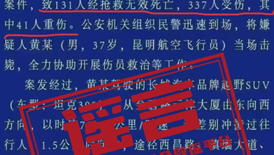 近日,有網民散布虛假的“警情通報”,造謠傳播云南昆明交通事故“致131人死亡,337人受傷”等不實信息,公安機關核查后,依法對造謠者進行了刑事拘留。“藍底白字”的“警情通報”是公安機關權威發布的重要渠道。不法分子竟敢冒用官方標識,將“2死9傷”惡意篡改成“131人死亡、337人受傷”,并編造聳人聽聞的細節,真是膽大包天!