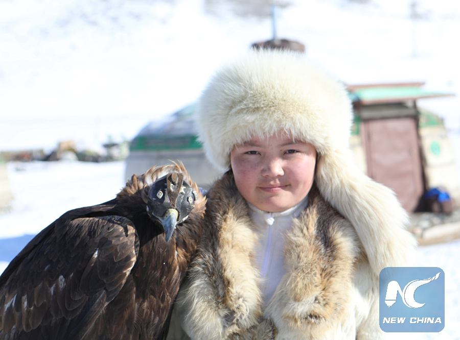Twenty eagle hunters aged 14-86 are competing in the 11th edition of the two-day festival to catch small animals, such as foxes and hares, with specially trained golden eagles, showing off the skills of both the birds and their trainers, according to the Mongolian Eagle Hunter's Association.
