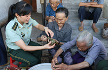 廣西欽州邊檢站官兵端午節(jié)前慰問敬老院孤寡老人??