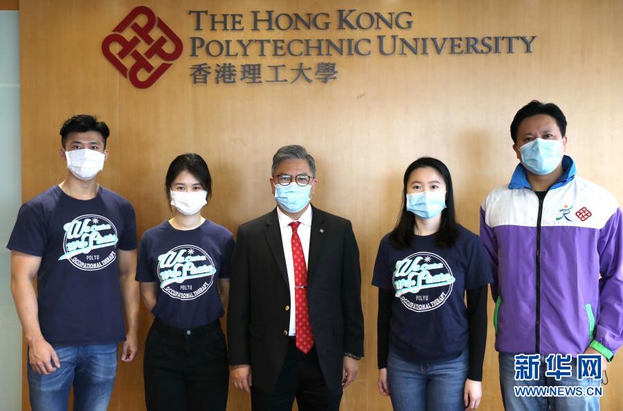 這是“愛(ài)無(wú)疆”團(tuán)隊(duì)成員合影。他們是(自左至右):香港理大康復(fù)治療科學(xué)系職業(yè)治療學(xué)三年級(jí)學(xué)生李穎東、香港理大康復(fù)治療科學(xué)系職業(yè)治療學(xué)四年級(jí)學(xué)生李舒平、香港理大康復(fù)治療科學(xué)系系主任曾永康、香港理大康復(fù)治療科學(xué)系職業(yè)治療學(xué)三年級(jí)學(xué)生梁熙童、香港理大康復(fù)治療科學(xué)系職業(yè)治療臨床導(dǎo)師鄧健聰(2020年12月12日攝)。新華社記者 吳曉初 攝