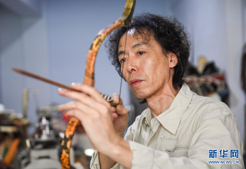騎馬、射箭、摔跤并稱為蒙古族的“男兒三藝”。在內蒙古錫林郭勒盟錫林浩特市,蒙古族手工藝人錫林虎,從2005年起致力于傳承民族特色文化,將“男兒三藝”中的傳統元素——馬鞍、弓箭、摔跤服融入工藝品制作中,打造出一件件獨具匠心的民族特色藝術品,受到牧民和游客的喜愛。