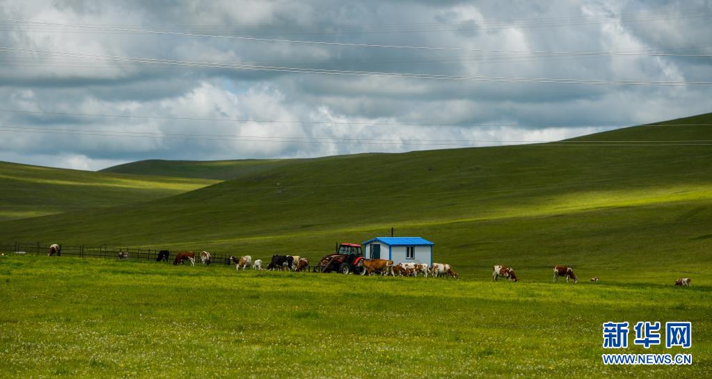 這是內蒙古呼倫貝爾332國道旁的草原風光(6月10日攝)。