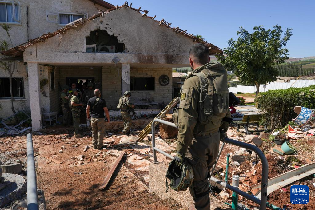 3月3日,在以色列北部尤瓦尔村,安全人员在一处遭受袭击波及的房屋开展工作。