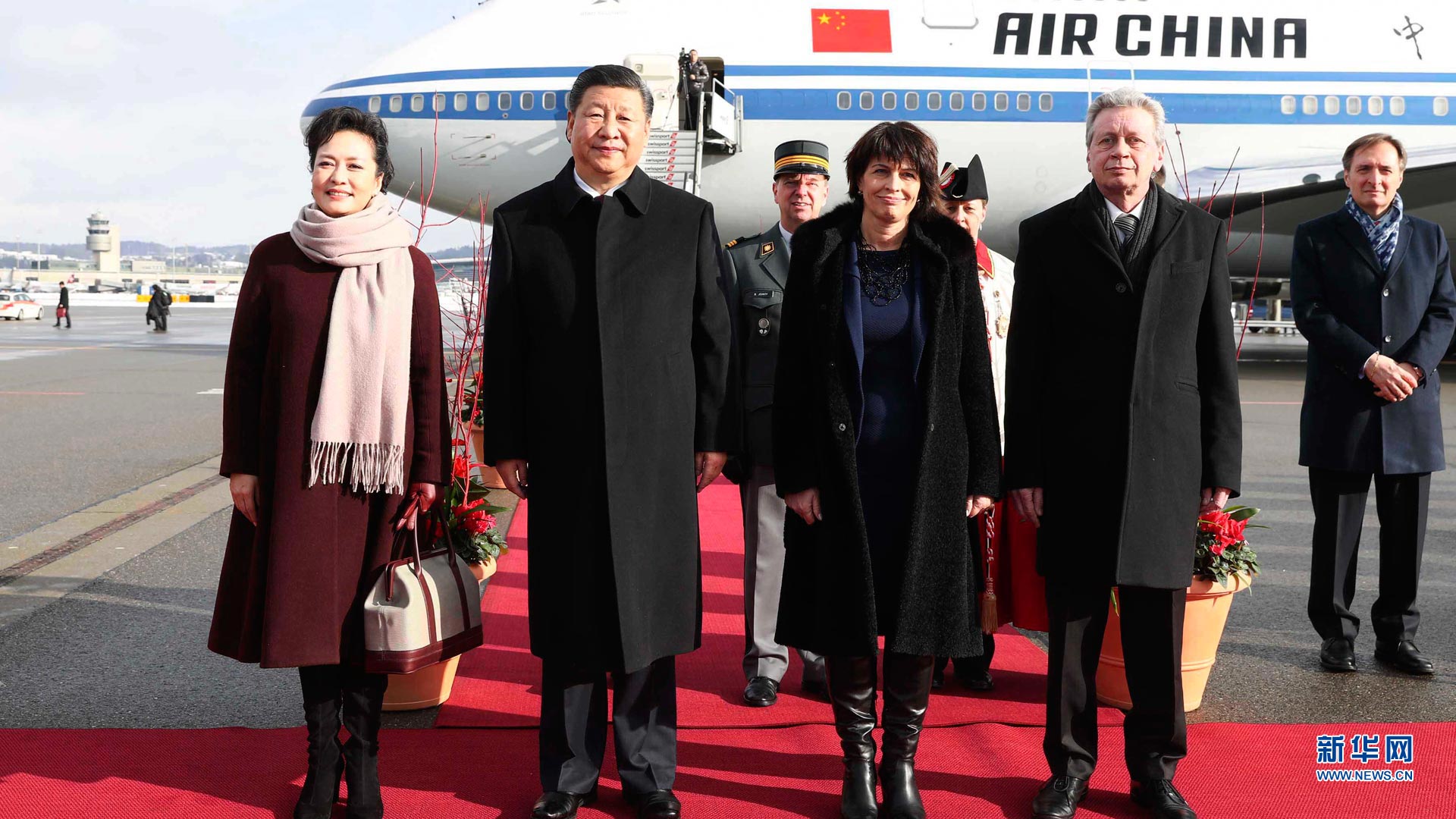1月15日,國家主席習(xí)近平乘專機(jī)抵達(dá)蘇黎世,開始對瑞士聯(lián)邦進(jìn)行國事訪問。 這是習(xí)近平和夫人彭麗媛步出艙門。新華社記者饒愛民攝2017-01-16