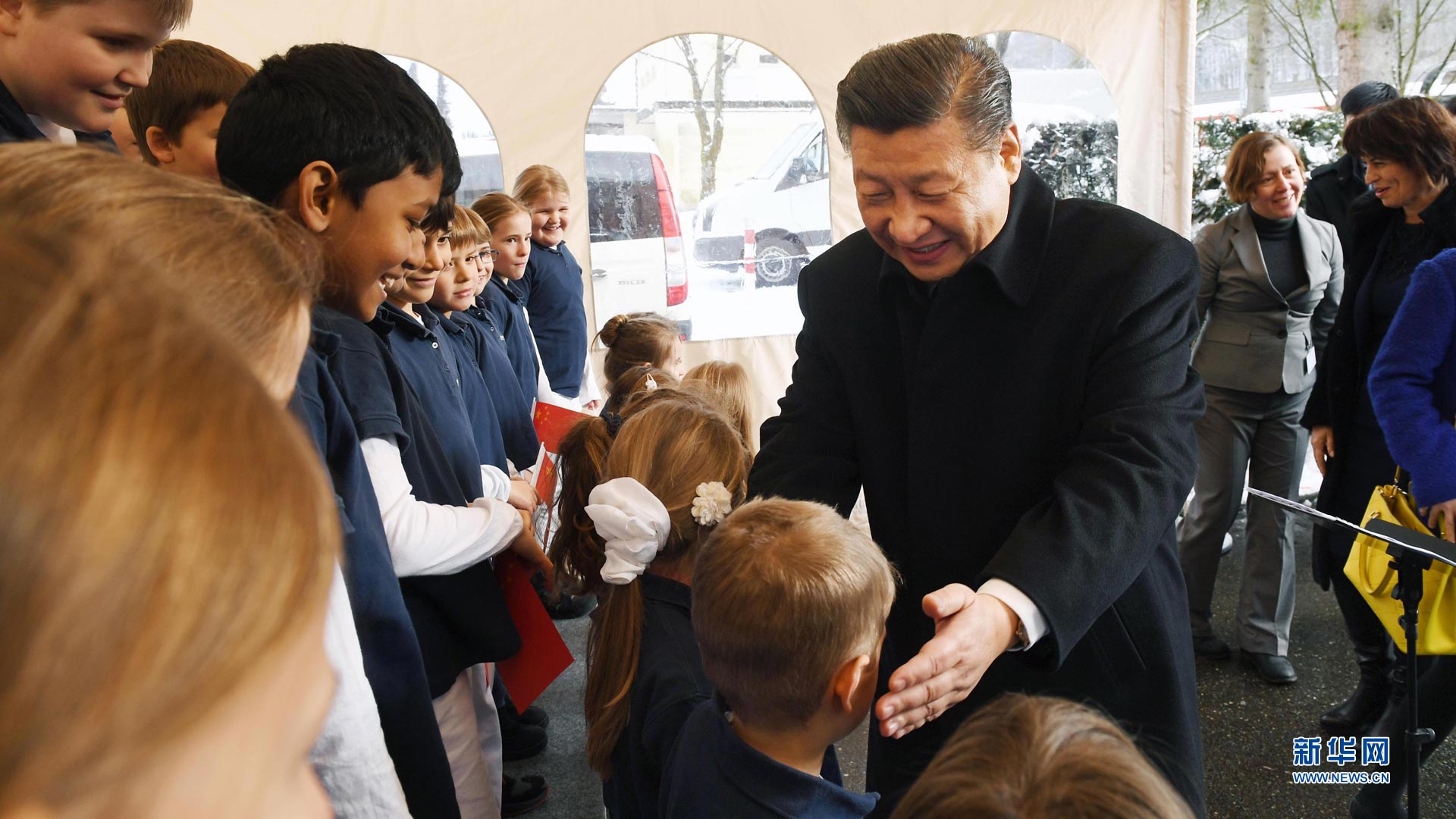 1月15日,國家主席習(xí)近平在瑞士聯(lián)邦主席洛伊特哈德陪同下,乘坐瑞士政府專列自蘇黎世前往瑞士首都伯爾尼。在專列行進(jìn)過程中,習(xí)近平和夫人彭麗媛受洛伊特哈德主席夫婦邀請,在輕松愉快的氛圍中品茶暢談。這是習(xí)近平在伯爾尼克爾薩茨火車站觀看瑞士童聲合唱團(tuán)表演后,與合唱團(tuán)的小演員交流。 新華社記者饒愛民攝2017-01-16