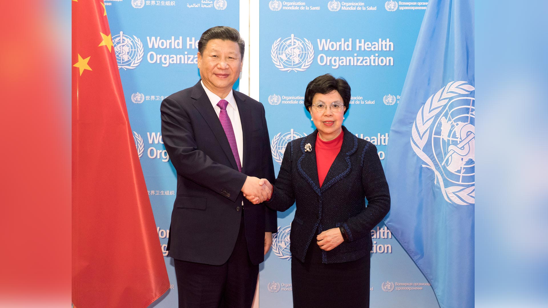 1月18日,國家主席習(xí)近平在瑞士日內(nèi)瓦訪問世界衛(wèi)生組織并會見陳馮富珍總干事。 新華社記者 吳曉凌 攝2017-01-19