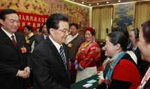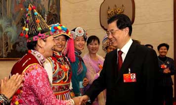 · 全國(guó)兩會(huì)少數(shù)民族代表委員茶話會(huì)舉行 胡錦濤等出席