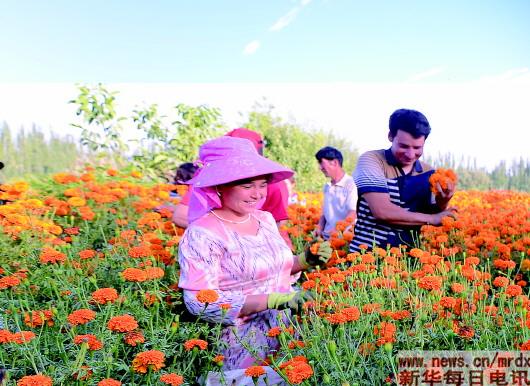 “種萬壽菊增收快,訂單農業很不錯。”巴格阿瓦提鄉巴格吉格代村貧困戶阿布力米提·賽麥提說,去年他只種了2.5畝萬壽菊就掙了5000元。