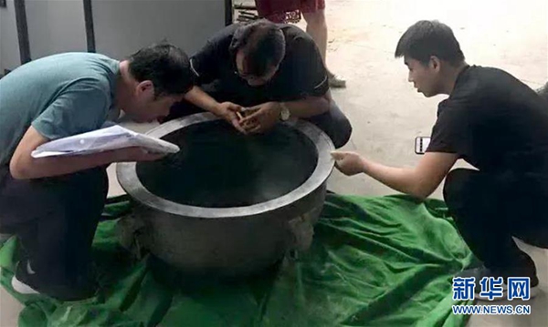 圖為被截獲文物“鑒盆”(8月8日攝) 。新華社發 (蘭州市公安局新聞辦 供圖)