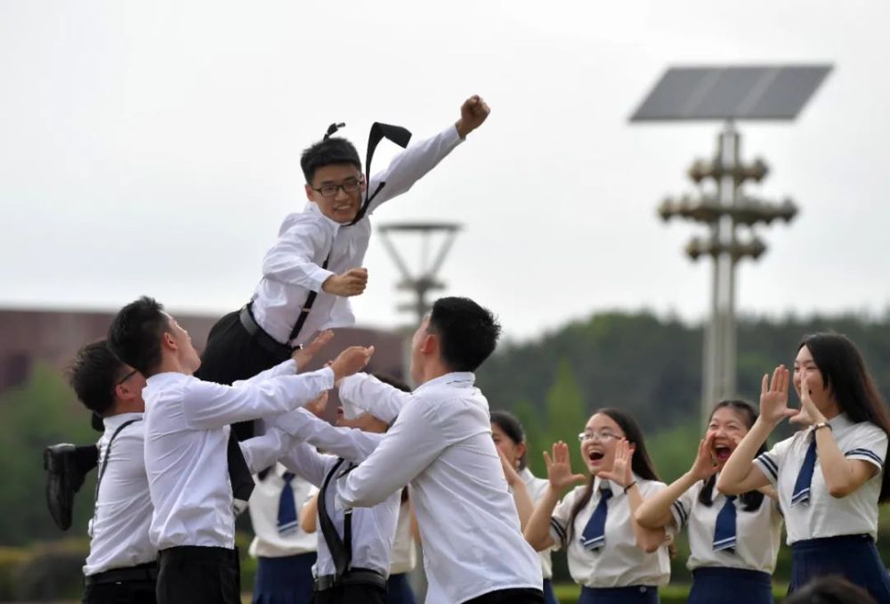 2020年6月10日,在南昌大學校園內,學子們一起歡呼,拍畢業(yè)照留念。新華社記者 彭昭之 攝