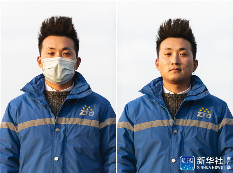 12月10日拍攝的中通快遞北京廠洼路網(wǎng)點的快遞員李杰肖像(拼版照片)。新華社記者 張豪夫 攝