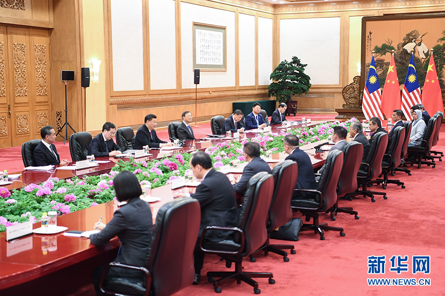 習近平指出,中國和馬來西亞建交45年,一半時間在馬哈蒂爾先生總理任內(nèi),你對中馬關系發(fā)展作出了重要貢獻。當前,兩國關系站在了新的歷史起點上。我們要以共建“一帶一路”為機遇,為中馬關系開創(chuàng)美好未來。雙方要堅持中馬友好,相互尊重和信任;照顧彼此重大關切,相互理解和支持。共建“一帶一路”可以推動中國全方位開放,這為世界各國、特別是周邊國家?guī)砀髾C遇。中馬共建“一帶一路”基礎扎實,前景可期,雙方要加強規(guī)劃,做大合作平臺,推進高質(zhì)量合作,要把“兩國雙園”做大做強,使其成為“陸海新通道”重要節(jié)點,促進兩國和地區(qū)聯(lián)通和發(fā)展。總理先生崇尚“亞洲價值觀”,倡導發(fā)展中國家團結(jié)合作,在當前形勢下有重要現(xiàn)實意義。雙方要加強多邊協(xié)作,推動中國-東盟合作提質(zhì)升級。中方支持馬方明年當好亞太經(jīng)合組織會議東道主,推動區(qū)域經(jīng)濟一體化和經(jīng)濟全球化,推動構建開放型世界經(jīng)濟。