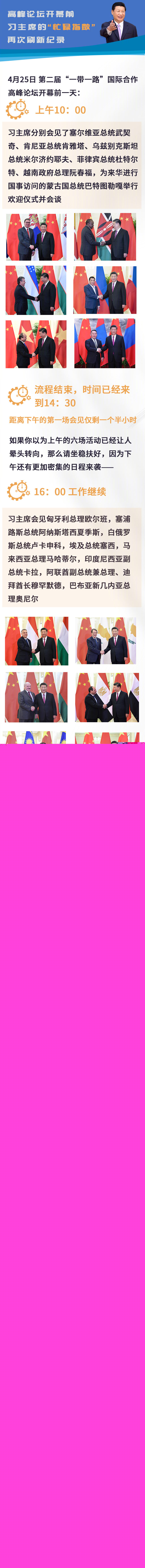 高峰論壇開幕前,習主席的“忙碌指數”再次刷新紀錄