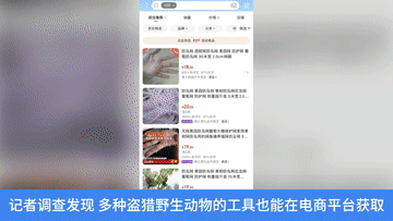 但記者在近日追蹤調查中發現,一些不法商販以諧音字、暗語等方式將野生動物制品及其盜獵工具在電商平臺上重新上架,非法盜捕盜獵活動有借電商平臺“還魂”趨勢。