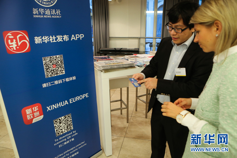 ??? 10月11日,在德國漢堡舉行的中歐論壇漢堡峰會上,作為此次峰會的媒體合作伙伴,新華社的工作人員在會議現(xiàn)場推介新華社發(fā)布和歐洲發(fā)布APP。中歐論壇漢堡峰會第六屆會議11日在德國漢堡閉幕。本屆峰會以“中國與歐洲相遇”為主題。來自中歐政治、經(jīng)濟(jì)和學(xué)術(shù)界的500多位代表聚集在一起,探討中歐經(jīng)貿(mào)合作未來趨勢、中國經(jīng)濟(jì)的綠色發(fā)展等重要議題。新華社記者張帆攝