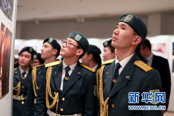 哈薩克斯坦軍校學生觀看展覽。新華網發