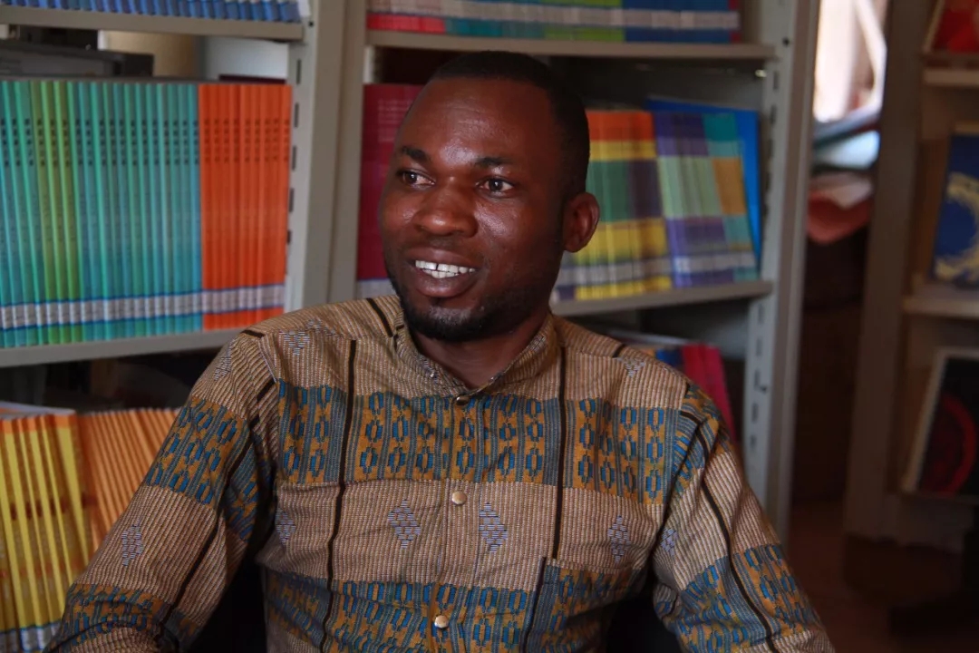 中土公司秘書桑德里娜·烏姆別伊接受記者采訪。新華社記者 饒愛民 攝