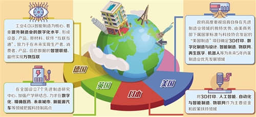 隨著智能制造、物聯網及3D打印等先進制造技術不斷發展和普及,其對經濟的帶動促進作用愈發明顯。全球主要經濟體正在爭先搶占這些先進制造技術的科技制高點,并紛紛在通過數字化、智能化改造傳統制造業的同時,結合本國產業特色,聚焦優勢領域,打造先進制造業王牌。在這一形勢下,美、日、歐洲等國家和地區在先進制造業領域的標準設定、技術研發、產品創新、市場轉化方面都制定了各具特色的路線圖。
