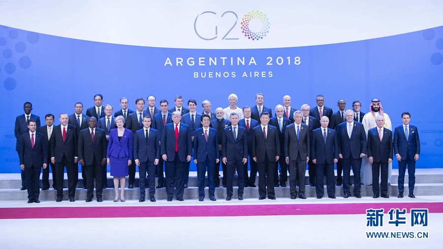 當(dāng)?shù)貢r(shí)間11月30日,二十國集團(tuán)領(lǐng)導(dǎo)人第十三次峰會(huì)在阿根廷布宜諾斯艾利斯舉行。國家主席習(xí)近平出席第一階段會(huì)議并發(fā)表題為《登高望遠(yuǎn),牢牢把握世界經(jīng)濟(jì)正確方向》的重要講話。這是習(xí)近平同其他與會(huì)領(lǐng)導(dǎo)人合影。 新華社記者 李濤 攝