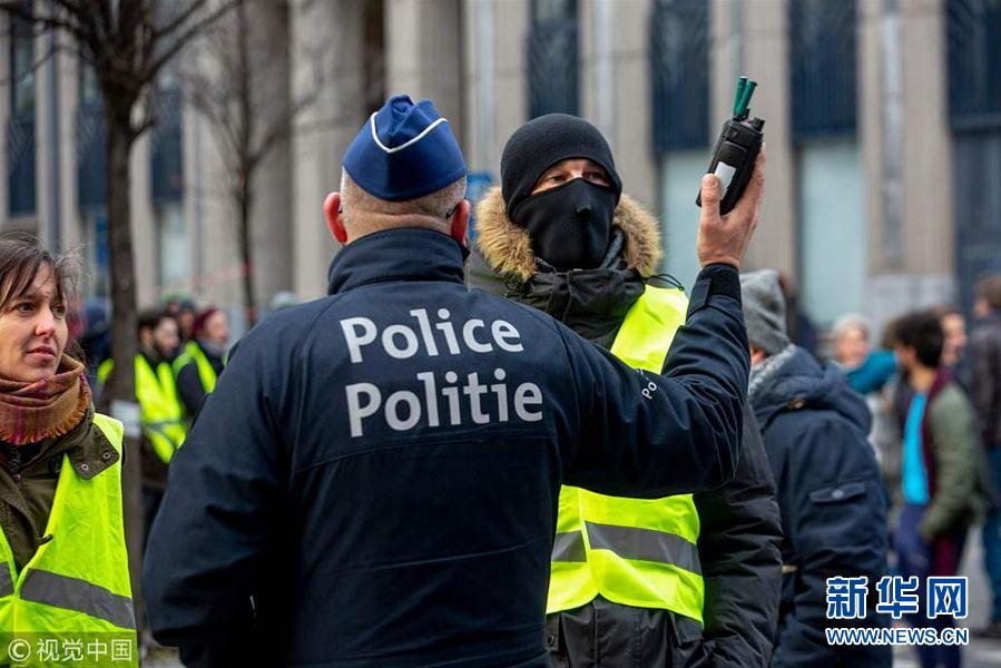 當(dāng)?shù)貢r(shí)間12月15日,比利時(shí)布魯塞爾,當(dāng)?shù)乇l(fā)“黃背心”抗議活動(dòng)。 (圖片來(lái)源:視覺(jué)中國(guó))