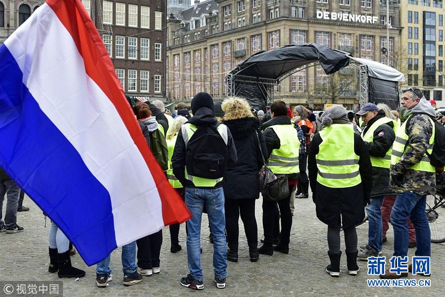 當(dāng)?shù)貢r(shí)間12月15日,荷蘭阿姆斯特丹,當(dāng)?shù)乇l(fā)“黃背心”抗議活動(dòng)。(圖片來(lái)源:視覺(jué)中國(guó))