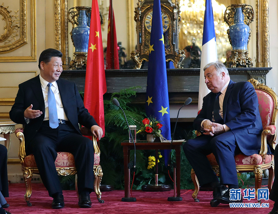 3月26日,國家主席習近平在巴黎會見法國參議長拉爾歇。 新華社記者張領攝