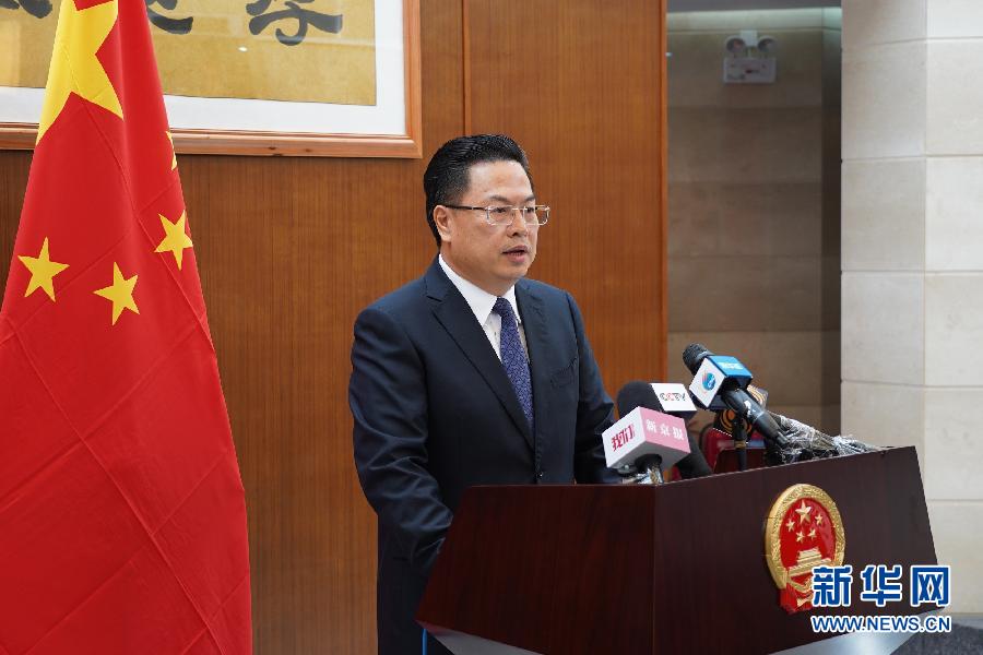 4月24日,在斯里蘭卡首都科倫坡,中國駐斯里蘭卡大使程學源在記者會上講話。 新華社記者 林昊 攝