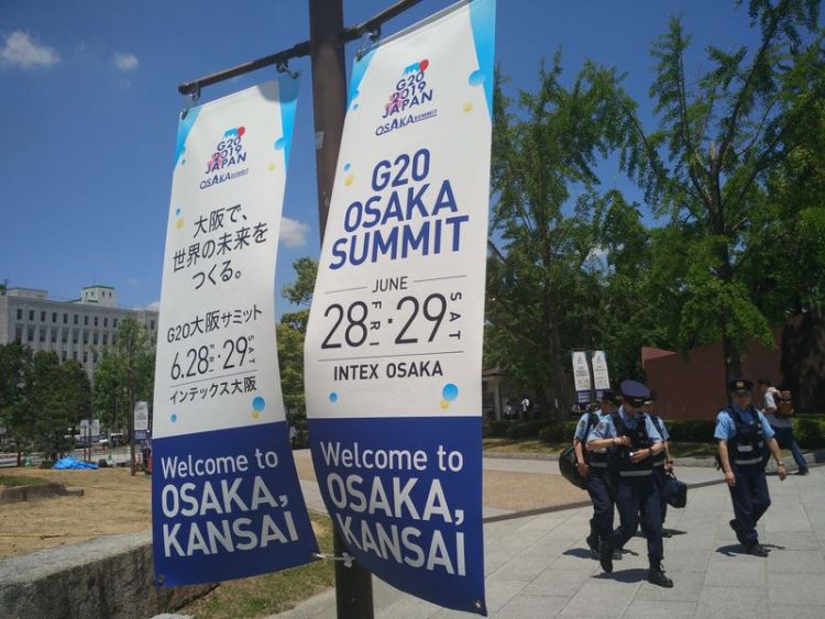 入夏的大阪,驕陽燦爛,綠意蔥蘢,海風(fēng)輕拂路人。隨著峰會(huì)臨近,在大阪主要景區(qū)、酒店、商廈及干道,均可以看到帶有二十國集團(tuán)領(lǐng)導(dǎo)人大阪峰會(huì)元素的標(biāo)牌、海報(bào)和條幅。