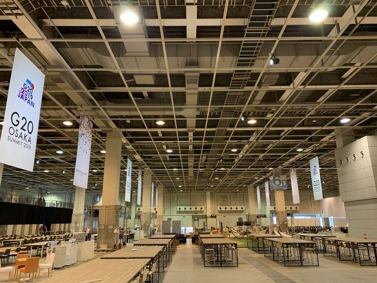 大阪國際會(huì)展中心內(nèi)景。二十國集團(tuán)領(lǐng)導(dǎo)人大阪峰會(huì)的新聞中心設(shè)在這里。新華社記者黃敬文攝
