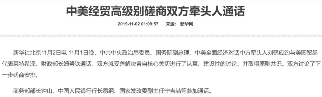 在充滿“變”的世界中,中美經貿磋商進程也在發生著變化。11月1日晚,中美經貿高級別磋商雙方牽頭人通了電話。