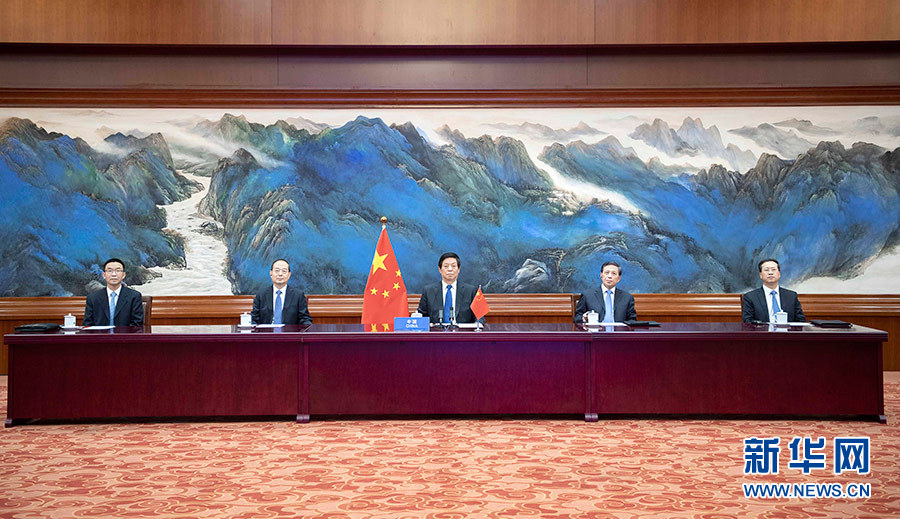 栗戰書在發言中表示,在全球抗擊新冠肺炎疫情的關鍵階段,以視頻方式舉行這次世界議長大會,彰顯了各國立法機構攜手抗疫、共克時艱的堅定決心和信心。