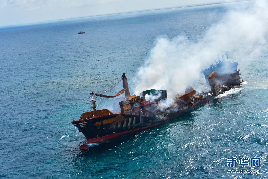 6月2日,斯里蘭卡總統(tǒng)戈塔巴雅下令將起火貨船“X-PRESS PEARL”號拖向遠離科倫坡港的深海區(qū),以防引發(fā)更大的環(huán)境災難。“X-PRESS PEARL”號貨船5月20日抵達科倫坡港西北約9.5海里錨地時發(fā)出火警求救信號。斯里蘭卡海洋環(huán)境保護局官員5月28日表示,在科倫坡港附近起火燃燒的“X-PRESS PEARL”號貨船預計將會引發(fā)嚴重環(huán)境災難。新華社發(fā)(斯里蘭卡空軍媒體處供圖)