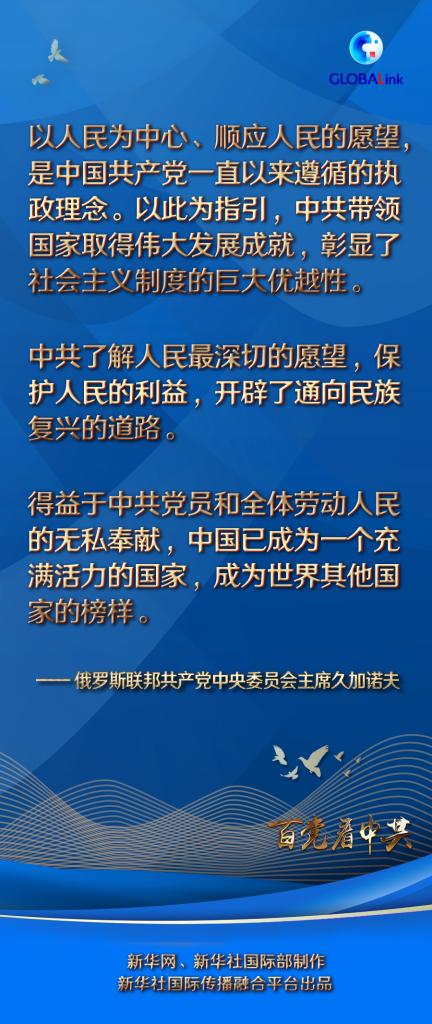 久加諾夫?qū)χ袊伯a(chǎn)黨百年華誕表示祝賀。回顧百年歷程,他表示,中共了解人民最深切的愿望,保護人民的利益,開辟了通向民族復(fù)興的道路。